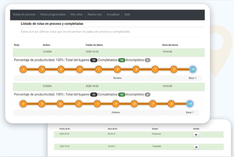 • Seguimiento de avance en ruta