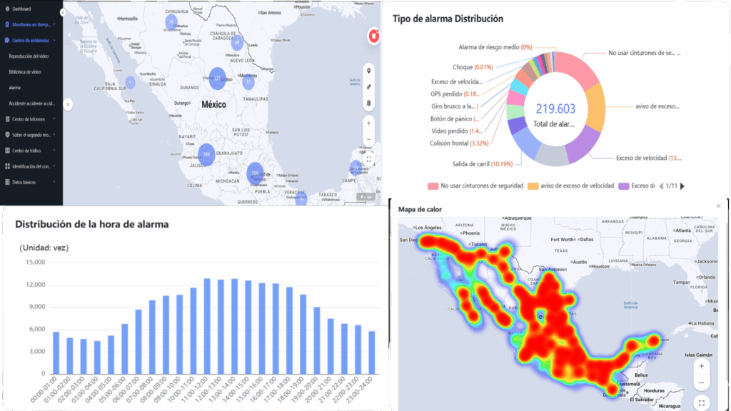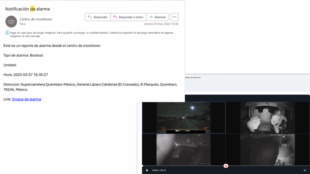 Cuenta con el envío de alertas a través del correo electrónico para visualización del clip o de fotografía con evidencia, ubicación, velocidad y conductor.